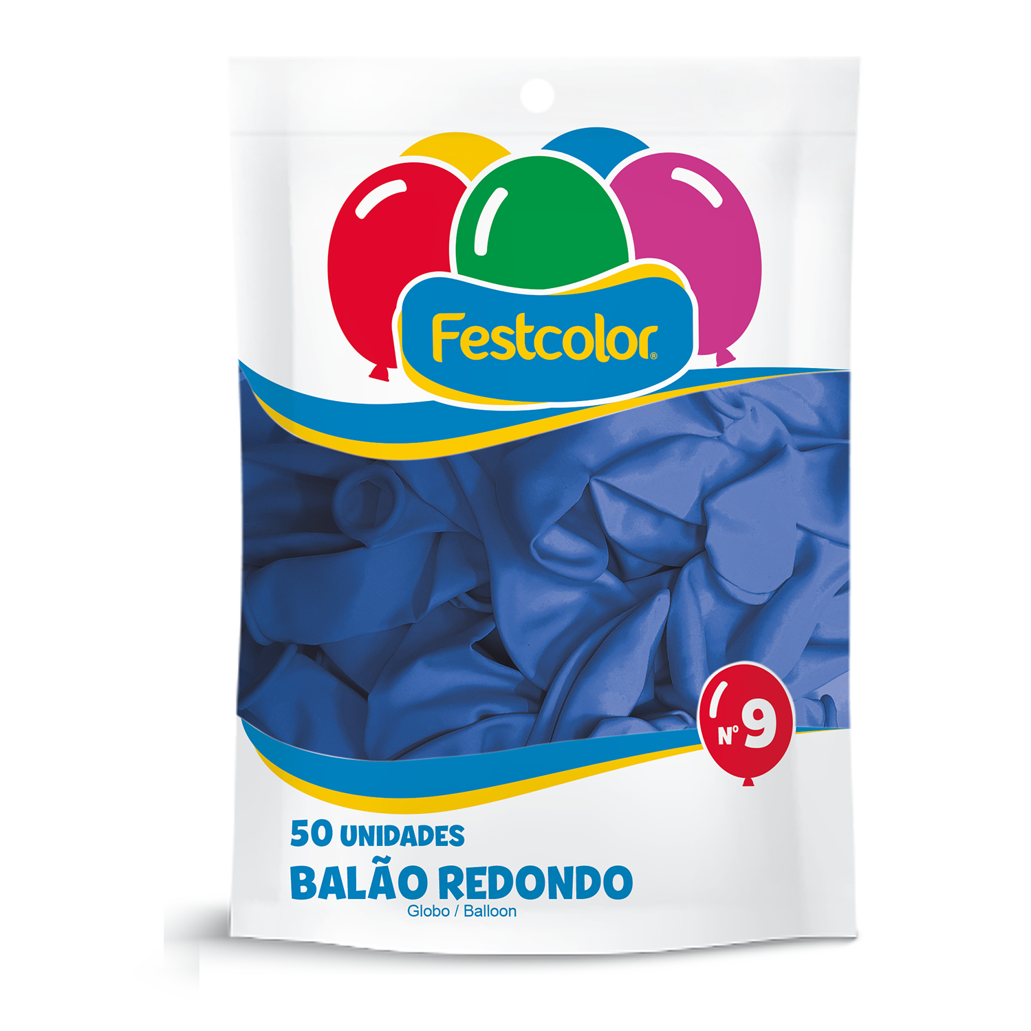 Balao Redondo Liso Festcolor Tamanho 9 Azul Escuro Com 50 Unidades - Embalagem 1X50 UN - Código interno: 26117 - Codigo de Barras EAN: 7908561335261