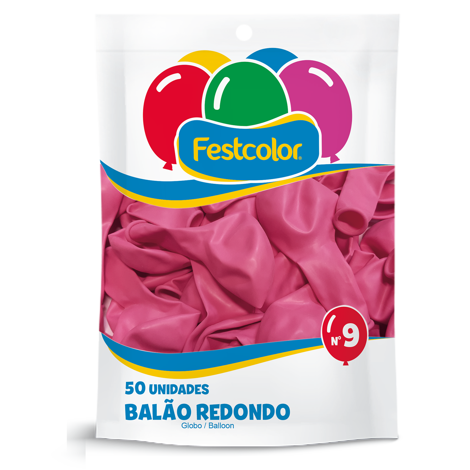 Balao Redondo Liso Festcolor Tamanho 9 Rosa Escuro Com 50 Unidades - Embalagem 1X50 UN - Código interno: 26123 - Codigo de Barras EAN: 7908561335315