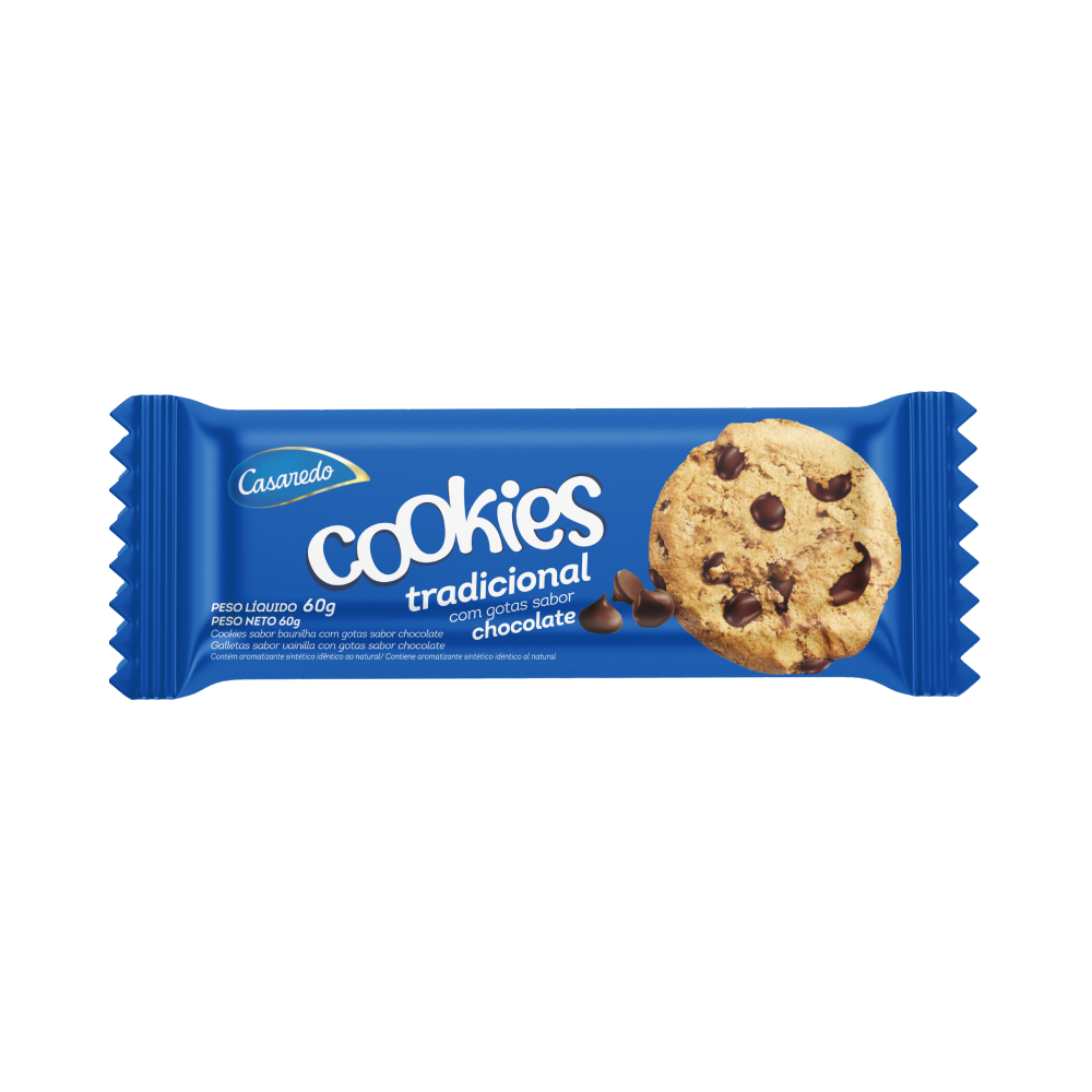Biscoito Cookies Casaredo Baunilha Com Gotas De Chocolate 60Gr - Embalagem 24X60 GR - Preço Unitário R$2,70 - Código interno: 26264 - Codigo de Barras EAN: 7896408444767