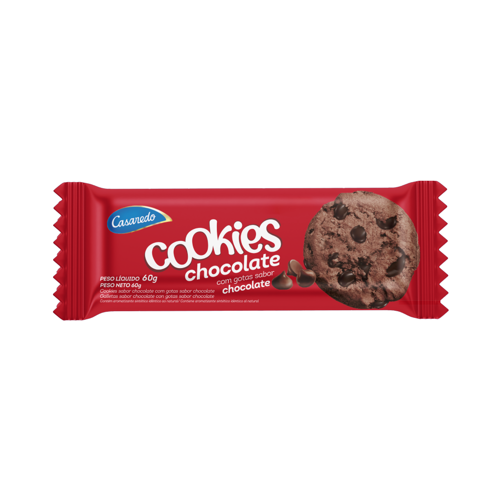 Biscoito Cookies Casaredo Chocolate Com Gotas De Chocolate 60Gr - Embalagem 24X60 GR - Preço Unitário R$2,70 - Código interno: 26265 - Codigo de Barras EAN: 7896408444750