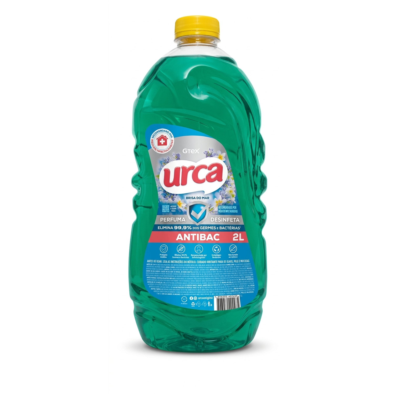 Desinfetante Urca Brisa Do Mar 2 Litros - Embalagem 6X2 LT - Preço Unitário R$4,55 - Código interno: 16326 - Codigo de Barras EAN: 7896056402485
