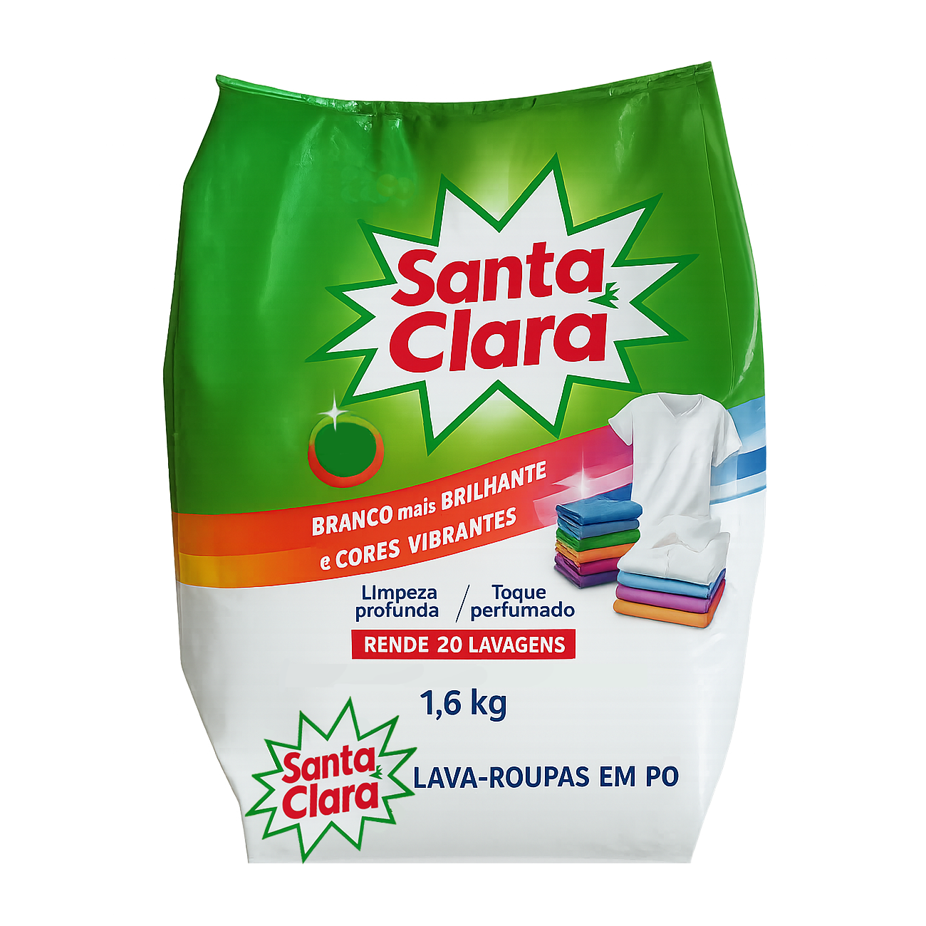 Detergente Lava Roupas Sabao Em Po Santa Clara Sache 1,6Kg - Embalagem 10X1,6 KG - Preço Unitário R$11,11