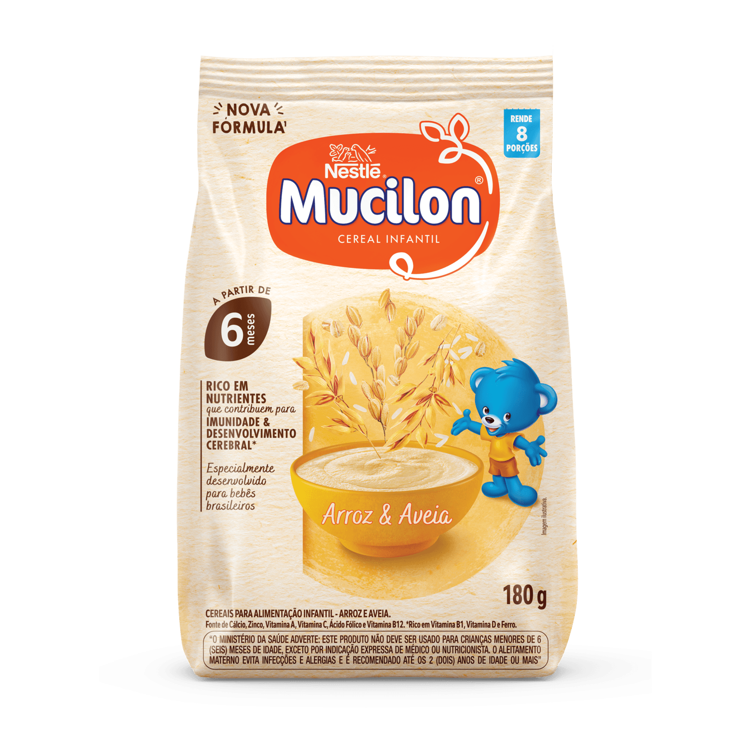 Mingau Mucilon Arroz E Aveia Sache 180Gr - Embalagem 1X180 GR - Código interno: 26364 - Codigo de Barras EAN: 7891000319543